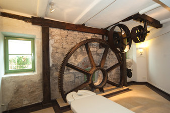 Erreichbar als Saunagast durch den Saunagarten des Badeparadieses, aber auch vom Brauweg aus präsentiert sich die Mühle in malerischem Ambiente als ein Therapie- und Verwöhnzentrum mit paradiesischen Dimensionen.